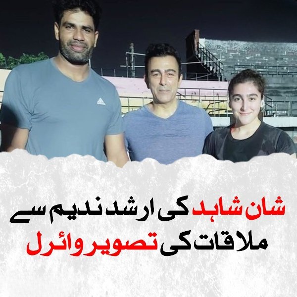 اداکار شان شاہد نے اپنے آفیشل انسٹاگرام ہینڈل پر ارشد ندیم سے ملاقات کی پرانی تصویر پوسٹ کی جس میں انکی بیٹی کو بھی ہمراہ دیکھا جاسکتا ہے۔ تصویر دیکھ کر ایسا لگ رہا ہے کہ شان شاہد اور انکی بیٹی بہشت نے کسی گراؤنڈ میں ارشد ندیم سے ملاقات کی تھی۔