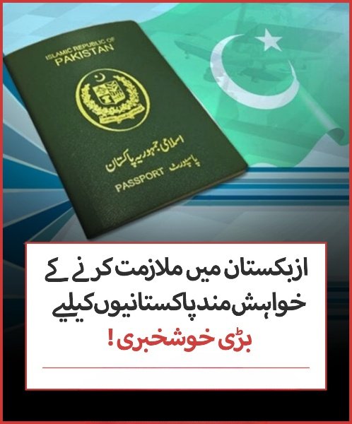 حکومتِ پاکستان کی جانب سے شہریوں کو ازبکستان میں ملازمت کرنے کیلیے ورک ویزا حاصل کرنے کی اجازت دے دی۔