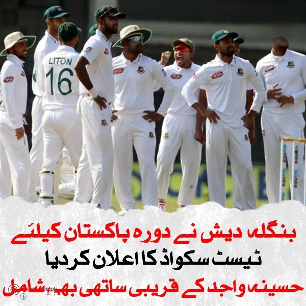 یاد رہے پاکستان اور بنگلہ دیش کی ٹیموں کے درمیان دو ٹیسٹ میچ کھیلے جائیں گے، پہلا ٹیسٹ21 اگست سے راولپنڈی اور دوسرا ٹیسٹ 30 اگست سے کراچی میں شروع ہوگا۔