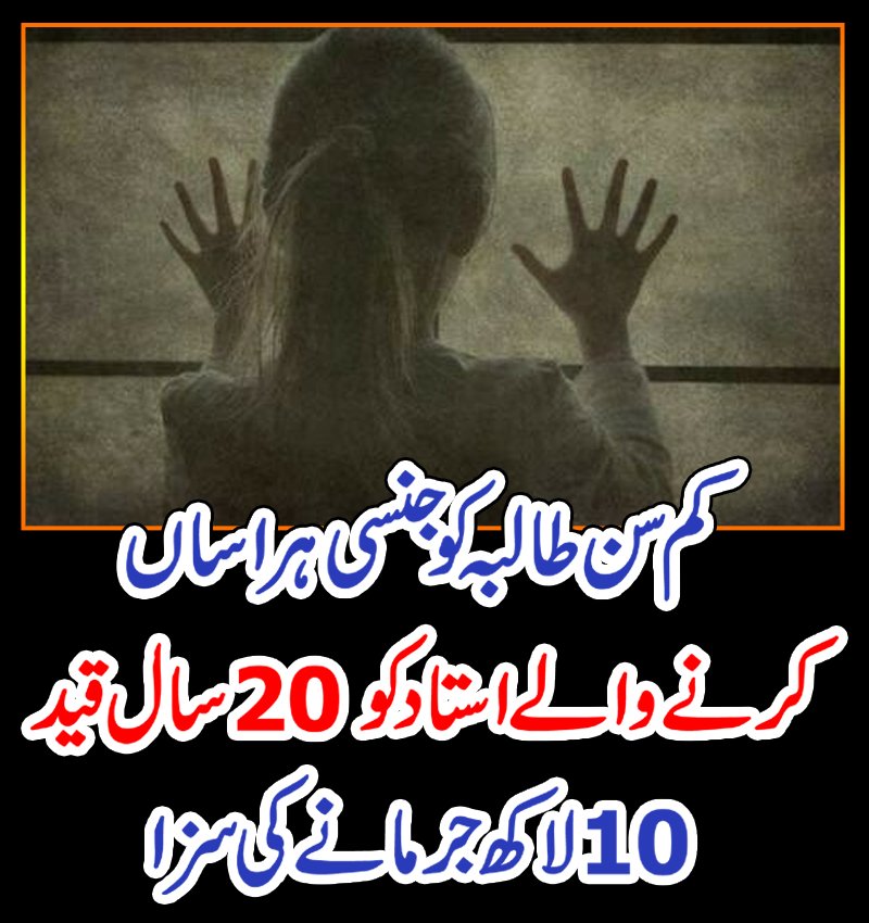 عدالت نے بہاولپور میں کم سن طالبہ سے ریپ کی کوشش کرنے والے مدرسے کے استاد کو 20 سال قید اور 10 لاکھ روپے جرمانے کی سزا سنادی۔میڈیا رپورٹ کے مطابق بہاولپور کے ایڈیشنل سیشن جج محمد عاشق نے گزشتہ روز گاؤں سوہانڑہ آرائیں میں 10 سالہ طالبہ کو جنسی طور پر ہراساں کرنے اور زیادتی کی کوشش کرنے والے مدرسے کے استاد کو سزا سنادی۔