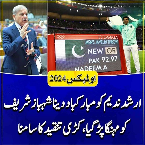 شہباز شریف نے لکھا کہ وزیراعظم شہباز شریف نے اپنے مبارکبادی پیغام میں لکھا کہ بہترین ارشد، تاریخ رقم، پاکستان کے پہلے اولمپک مینز جیولین چیمپئن، ارشد ندیم پیرس اولمپک میں تاریخی گولڈ میڈل گھر لے آئے، نوجوان آپ نے پوری قوم کے لیے باعث فخر ہیں ۔