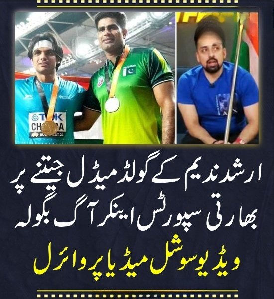 بھارتی سپورٹس اینکر سوشل میڈیا پر ہکا بکا رہ گیا اور ڈیمانڈ کرنے لگا کہ ارشد ندیم کا ڈوپ ٹیسٹ کروایا جائے کیونکہ ان کے مقابلے پر بھارتی اولمپئین نیرج چوپڑا محض 89 میٹرز کی تھرو کرسکے تھے اور سلور میڈل اپنے نام کیا۔