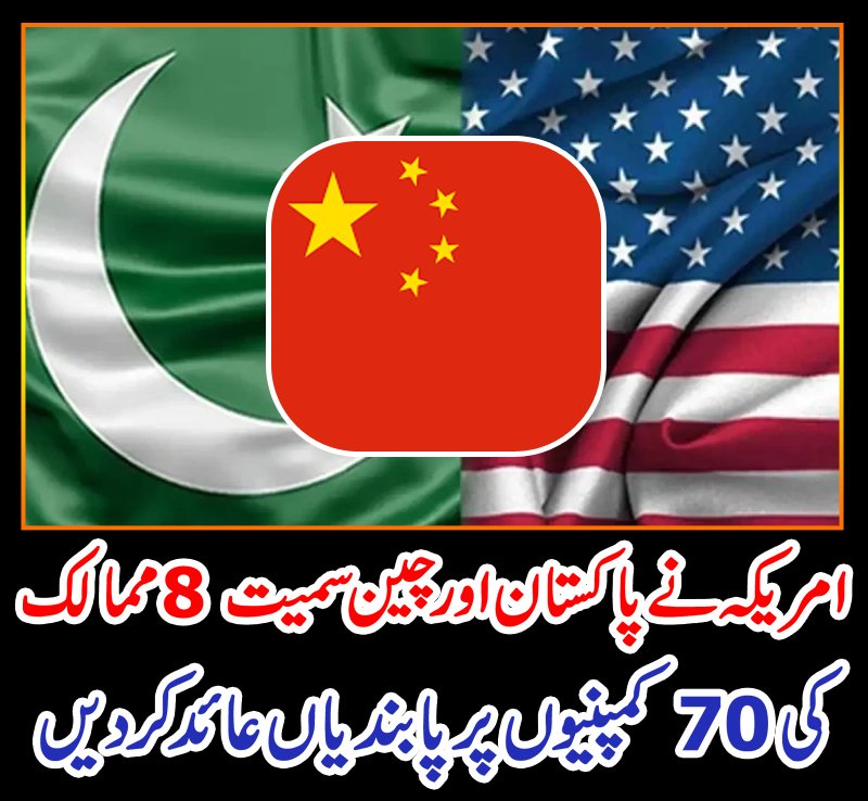 امریکہ نے پاکستان، چین اور 8 دیگر ممالک کی مجموعی طور پر70 کمپنیوں پر برآمدی پابندیاں عائد کر دی ہیں۔یہ پابندیاں ان کمپنیوں کے خلاف تجارتی تعلقات کو محدود کرنے کے لیے عائد کی گئی ہیں جن پر امریکی حکام کے مطابق قومی سلامتی کے خطرات کے خدشات ہیں۔