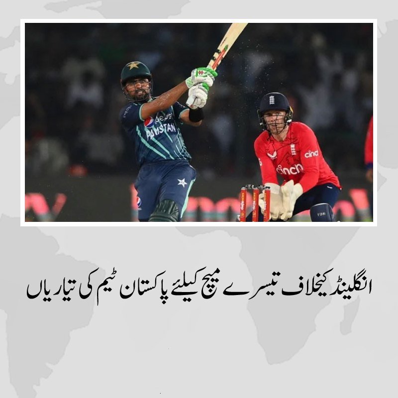 انگلینڈ سے تیسرے ٹی ٹوئنٹی میچ میں مقابلے کےلیے پاکستان کرکٹ ٹیم کی تیاریاں جاری ہیں۔