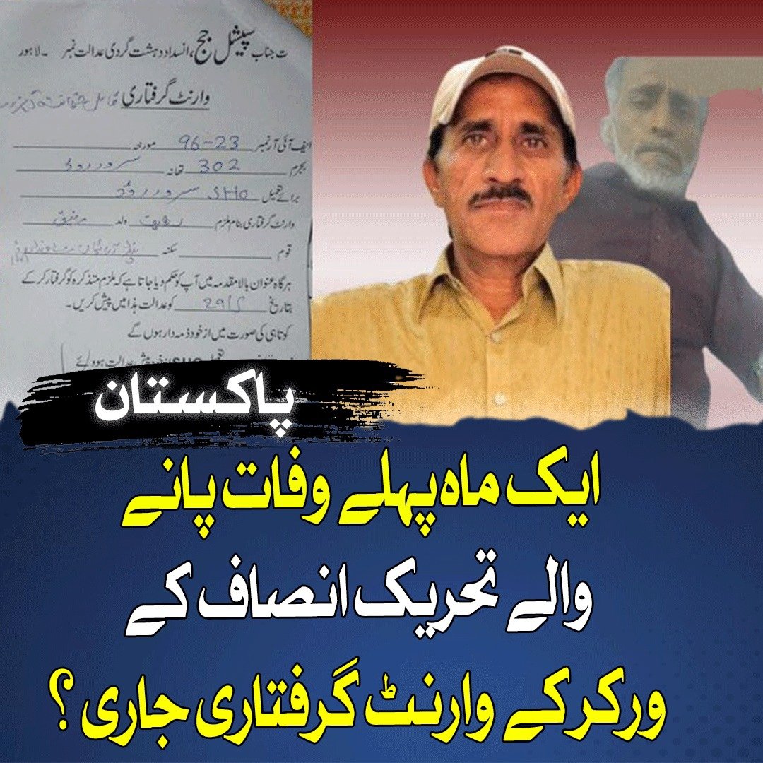 1 ماہ پہلے وفات پانے والے تحریک انصاف کے ورکر کے وارنٹ گرفتاری جاری۔۔۔