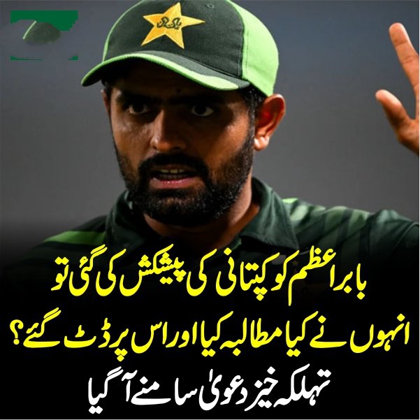 نجی ٹی وی ایکسپریس نیوز کے مطابق محسن نقوی نے نئی سلیکشن کمیٹی تشکیل دینے کے بعد اسے کپتان سے متعلق تجاویز کی ہدایت کی جس پر سلیکشن کمیٹی نے محمد رضوان اور بابراعظم کا نام بھجوایا ۔ چیئرمین نے مشاور ت کے بعد بابراعظم کو ذمہ داری دینے کا فیصلہ کیا لیکن اب دعویٰ سامنے آ رہاہے کہ بابراعظم نے بھی مطالبہ کر دیاہے کہ انہیں تینوں فارمیٹ میں کپتانی دی جائے ۔