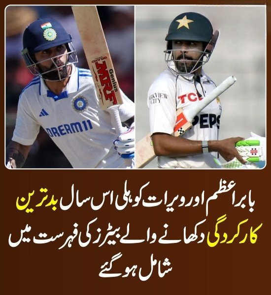 بابر اعظم اور ویرات کوہلی اس سال بدترین کارکردگی دکھانے والے بیٹرز کی فہرست میں شامل