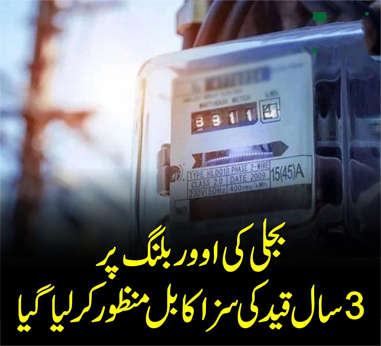 بجلی کی اوور بلنگ پر 3 سال قید کی سزا کا بل منظور کر لیا گیا
