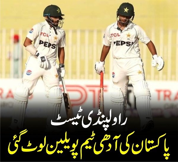 پاکستان ٹیم کی جانب سے کھیل کے پہلے روز 4 کھلاڑی آؤٹ ہوئے، قومی ٹیم کی پہلی وکٹ 3 کے مجموعی سکور پر گری جب عبد اللہ شفیق 2 رنز پر پویلین لوٹے پھر دوسری وکٹ 14 کے مجموعی سکور پر کپتان شان مسعود کی گری جو 6 رنز بنا کر آؤٹ ہوگئے۔