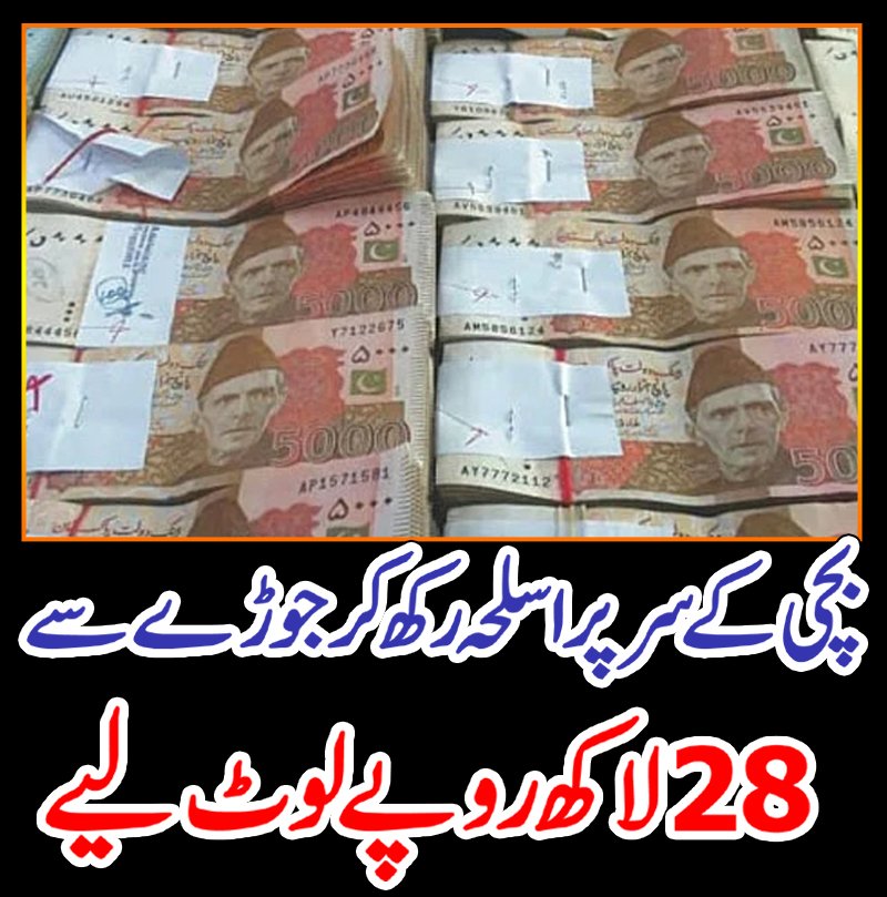 بچی کے سرپراسلحہ رکھ کر جوڑے سے 28 لاکھ روپے لوٹ لیے