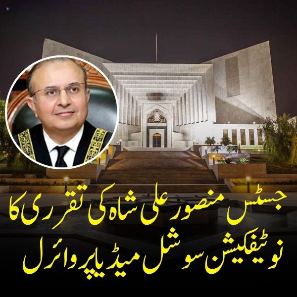 جسٹس منصور علی شاہ کی تقرری کا نوٹیفکیشن وائرل