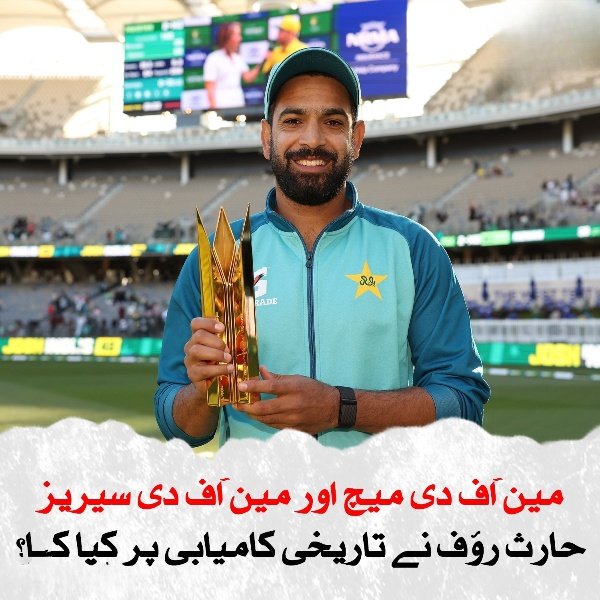 حارث رؤف آسٹریلیا کیخلاف ون ڈے سیریز کے تیسرے میچ کے بہترین کھلاڑی قرار پائے ،انہوں نے سیریز کے بہترین کھلاڑی کا اعزاز بھی حاصل کیا۔