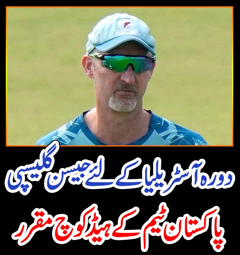 پاکستان کرکٹ بورڈ نے دورہ آسٹریلیا کے لیے جیسن گلیسپی کو قومی ٹیم کا ہیڈکوچ مقرر کر دیا ہے۔پی سی بی اعلامیے کے مطابق وہ وائٹ بال ٹیم کے مستعفی ہیڈ کوچ گیری کرسٹن کی جگہ اضافی ذمہ داریاں سنبھالیں گے، گیری کرسٹن کا استعفا منظور کر لیا گیا ہے۔