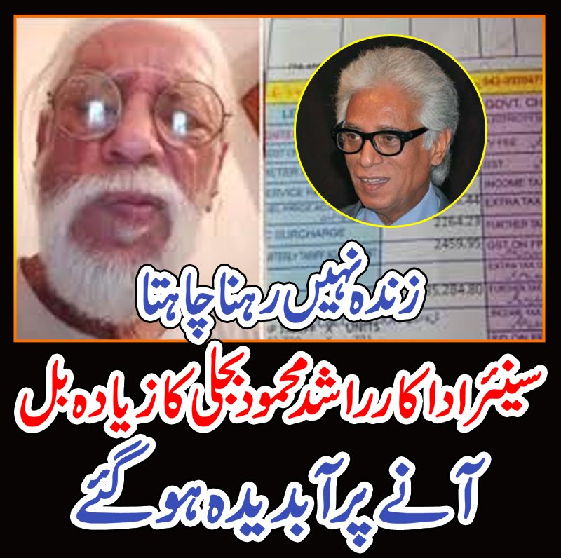 ماضی کے مقبول اور سینئر اداکار راشد محمود 45 ہزار کا بجلی کابل دیکھ کر پھٹ پڑیاور بل کی تصویر شیئر کرتے ہوئے ارباب اختیار کو کھری کھری سناکر آبدیدہ ہوگئے۔ایک ویڈیو میں راشد محمود نے بتایا کہ میرے 701 یونٹ کا بل 45 ہزار 368روپے آیا ہے ، میں 4 مرتبہ ہارٹ اٹیک کے باوجود اللہ کے کرم سے زندہ ہوں لیکن آج سوچتا ہوں میرے اللہ مجھے کیوں بچایا، میں نے اپنی ساری زندگی اس ملک کی نہایت ایمانداری کے ساتھ خدمت کی، ہمارے کاموں کے باعث یہاں اربوں روپے اکٹھا ہوئے تاہم پچھلے کئی سالوں سے لاہور میں ہمارے لیے کوئی کام نہیں،