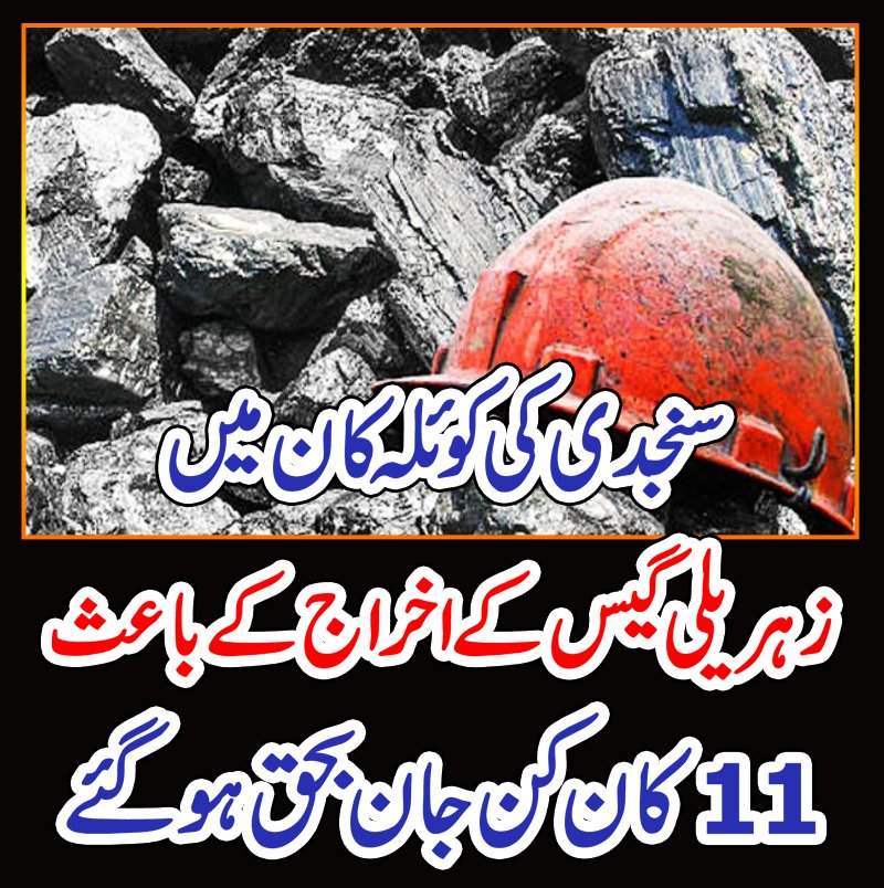 کوئٹہ کے نواحی علاقے سنجدی کی کوئلہ کان میں زہریلی گیس کے اخراج کے باعث 11کان کن جان بحق ہوگئے ،جان بحق کان کنوں کا تعلق کے پی کے کے علاقے سوات ہے جاں بحق کان کنوں کی میتیں کوئلہ کان سے نکال لی گئیں کان کو سیل کرکے تحقیقات شروع کردی گئیں ۔