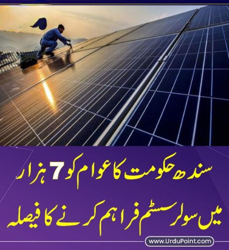 سندھ حکومت نے عالمی بینک کے اشتراک سے 7 ہزار روپے کے عوض مکمل سولر سسٹم عوام کو فراہم کرنے کا فیصلہ کرلیا،منصوبے کے تحت سندھ بھر میں2 لاکھ گھرانوں کو سولر سسٹم فراہم کیا جائے گاجن میں کراچی کے 50ہزار گھرانے بھی شامل ہیں، عالمی بینک کے اشتراک سے مجوزہ فراہم کردہ سولر سسٹم سے ایک پنکھا اور 3 ایل ای ڈی بلب جلائے جاسکیں گے۔