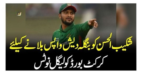 وکیل کی جانب سے بی سی بی کو بھجوائےگئے لیگل نوٹس میں کہا گیا ہےکہ شکیب الحسن کو تحقیقات کے لیے واپس بنگلہ دیش بلایا جائے۔