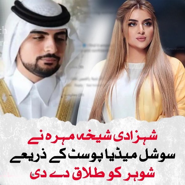 یو اے ای کے نائب صدر و وزیراعظم اور دبئی کے حکمران شیخ محمد بن راشد المکتوم کی بیٹی شہزادی شیخہ مہرہ بنت محمد بن راشد المکتوم نے سوشل میڈیا پوسٹ کے ذریعے اپنے شوہر شیخ مانع بن محمد بن راشد بن مانع المکتوم کو طلاق دے دی۔
