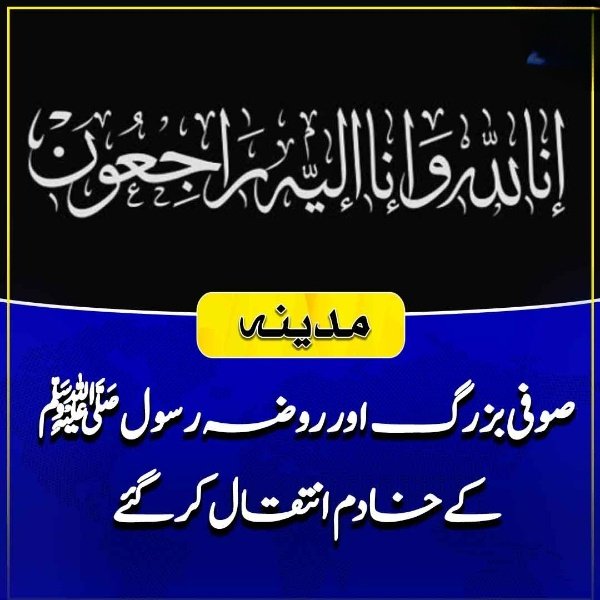 صوفی بزرگ اور خادم روضہ رسولﷺ انتقال کرگئے