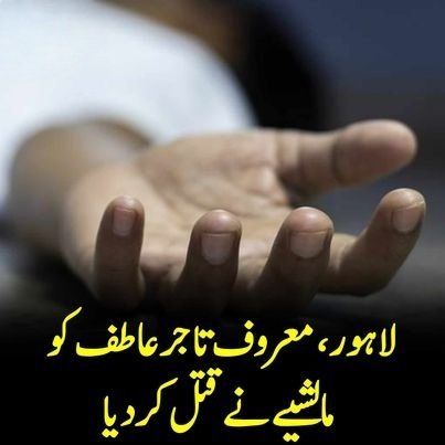 شفیق آباد کے علاقہ کھوکھر ٹاؤن میں معروف تاجر عاطف کو اس کے مالشیے نے چھری کے وار کر کےقتل کردیا۔