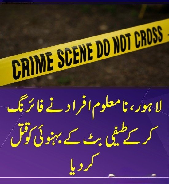 صوبائی دارالحکومت لاہور کے کینال رو ڈ پر نامعلوم افراد نے فائرنگ کرکے طیفی بٹ کے بہنوئی کو قتل کر دیا،مقتول کی شناخت جاوید بٹ کے نام سے ہوئی ہے، مقتول طیفی بٹ کے بہنوئی تھے،بتایاگیا ہے کہ مسلم ٹاﺅن کے قریب جاوید بٹ اپنی گاڑی میں سوار تھے اسی اثناءمیں نامعلوم افراد نے انہیں ٹارگٹ کیا اور ان کی گاڑی پر اندھا دھند فائرنگ کر دی ۔