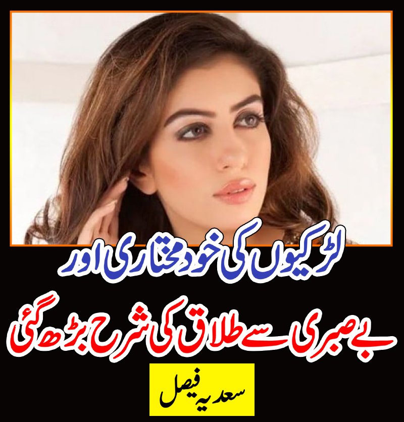 پاکستانی اداکارہ سعدیہ فیصل نے کہا ہے کہ معاشرے میں بڑھتی ہوئی طلاق کی شرح لڑکیوں میں خود مختاری اور بے صبری کی وجہ سے ہے۔