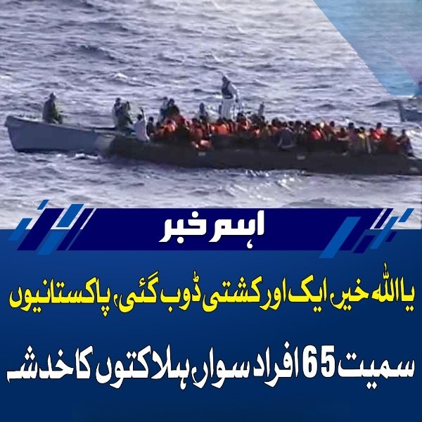 لیبیا میں پاکستانی شہریوں کو لے جانے والی ایک اور کشتی حادثے کا شکار ہو گئی۔ترجمان دفتر خارجہ نے لیبیا میں ایک اور کشتی حادثے کی تصدیق کرتے ہوئے بتایا کہ لیبیا کے ساحل کے قریب پاکستانی شہریوں کو لے جانے والی کشتی حادثے کا شکار ہوئی ہے۔لیبیا میں پاکستانی سفارتخانے کے مطابق 65 مسافروں کو لے جانے والی کشتی مرسا ڈیلا کی بندرگاہ کے قریب الٹی۔