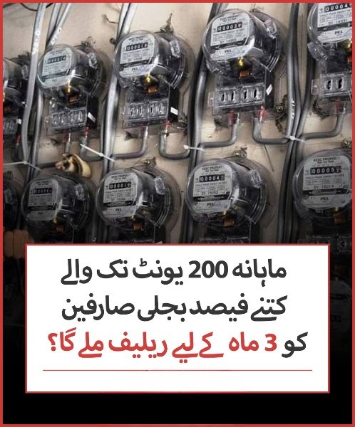 ماہانہ 200 یونٹ تک والے کتنے فیصد بجلی صارفین کو 3 ماہ کے لیے ریلیف ملے گا؟