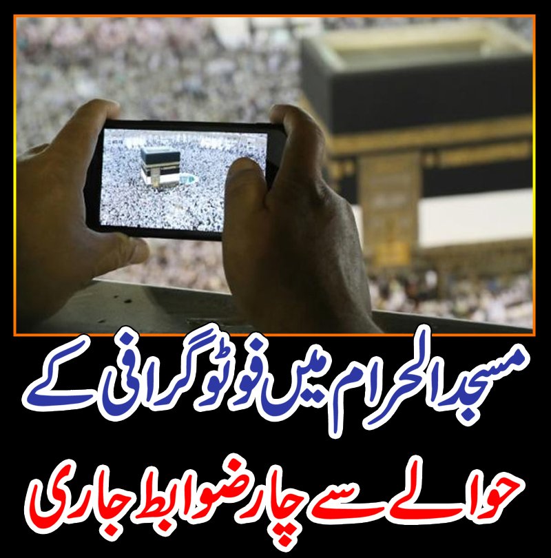 سعودی وزارت حج وعمرہ نے مسجد الحرام میں فوٹو گرافی کے حوالے سے چار ضوابط کی وضاحت کرتے ہوئے کہا ہے کہ زائرین اور نمازیوں کی آمد ورفت اور عبادت میں کوئی رکاوٹ نہ آئے۔غیرملکی خبررساں ادارے کے مطابق وزارت کے ایکس اکاونٹ پر بیان میں وزارت حج وعمرہ نے کہا کہ زائرین کی آمد ورفت کے راستوں سے دور فوٹو گرافی کی جائے جبکہ کسی کی پرائیویسی متاثر کرنے والی تصاویر لینے سے گریز کیا جائے۔