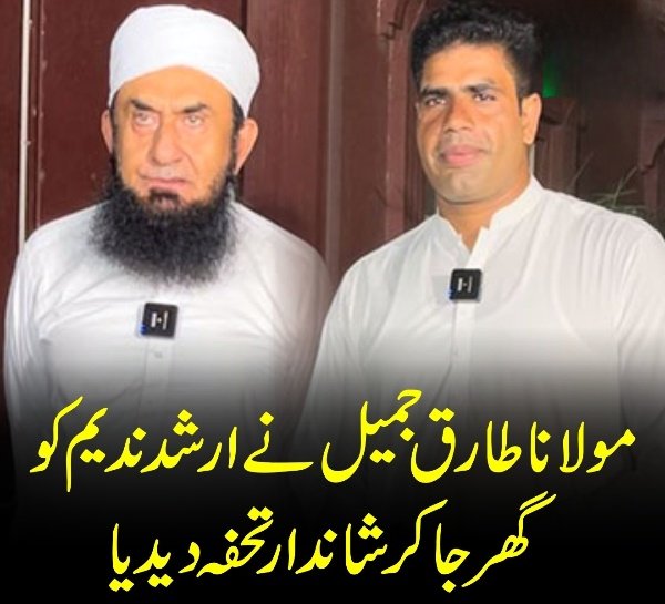 پیر کو پاکستان کے معروف مذہبی اسکالر مولانا طارق جمیل خصوصی طور پر میاں چنوں میں ارشد ندیم کے گھر گئے جہاں انہوں نے قومی ہیرو اور فخر پاکستان اولمپیئن ارشد ندیم سے ملاقات کی اور انہیں اپنی طرف سے 5 لاکھ روپے کا چیک بطور انعام دیا۔