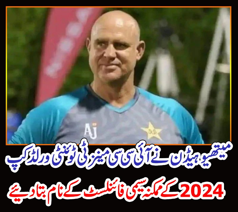 پاکستان کرکٹ ٹیم کے سابق بیٹنگ کوچ میتھیو ہیڈن نے آئی سی سی مینز ٹی ٹوئنٹی ورلڈ کپ 2024 کے ممکنہ سیمی فائنلسٹ کے نام بتا دیئے۔سابق آسٹریلوی کرکٹر میتھیو ہیڈن نے غیر ملکی میڈیا سے بات چیت کرتے ہوئے آئندہ ٹی ٹوئنٹی ورلڈ کپ کے سیمی فائنل تک رسائی حاصل کرنے والی اپنی ہاٹ فیورٹ ٹیئمز کے نام بتا دیئے۔ان کے مطابق رواں سال ہونے والے ٹی ٹوئنٹی ورلڈ کپ کے سیمی فائنل میں بھارت، انگلینڈ، آسٹریلیا اور جنوبی افریقا کے پہنچنے کے قوی امکان ہیں۔