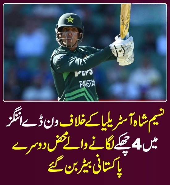 نسیم شاہ پاکستان کے محض دوسرے بیٹر ہیں جنہوں نے آسٹریلیا کیخلاف ون ڈے میں اننگز میں 4 چھکے لگائے ۔