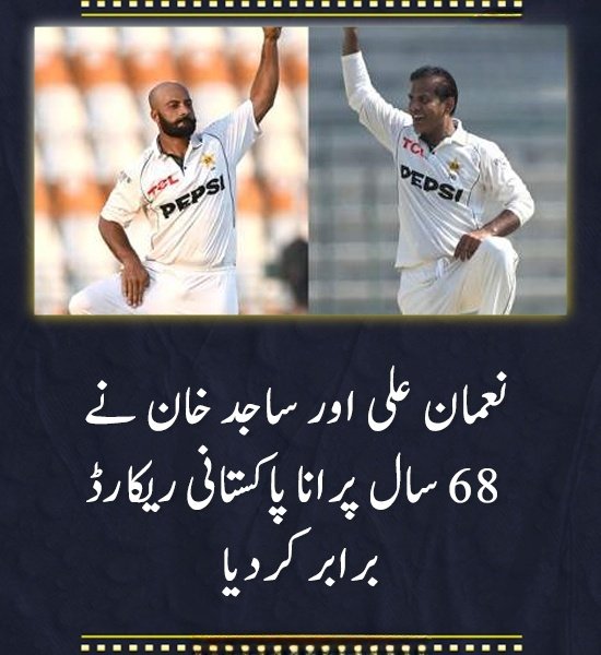 نعمان علی اور ساجد خان نے 68 سال پرانا پاکستانی ریکارڈ برابر کردیا