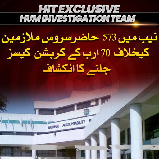نیب میں 573 حاضرسروس ملازمین کیخلاف 70 ارب کے کرپشن کیسز چلنے کا انکشاف