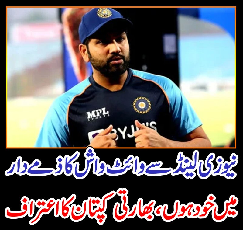 بھارتی کرکٹ ٹیم کے کپتان روہت شرما نے نیوزی لینڈ سے تین ٹیسٹ میچوں کی سیریز میں وائٹ واش کا ذمے دار خود کو قرار دیا ہے۔سیریز میں شرمناک کارکردگی کے بعد بھارتی کپتان روہت شرما نے میڈیا سے گفتگو میں نیوزی لینڈ کے خلاف وائٹ واش کی ذلت آمیز شکست کا ذمے دار خود کو ٹھہراتے ہوئے کہا ہے کہ میں نے اپنی بہترین کارکردگی کا مظاہرہ نہیں کیا۔