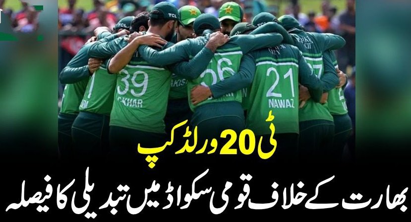 پاکستان نے ٹی 20 ورلڈ کپ میں بھارت کے خلاف اہم میچ کے لیے سکواڈ میں تبدیلی کا فیصلہ کرلیا ہے۔