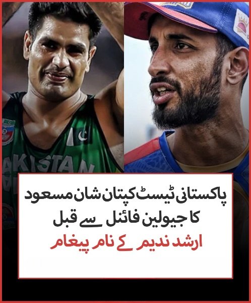 پاکستانی ٹیسٹ کپتان شان مسعود کا جیولین فائنل سے قبل ارشد ندیم کے نام پیغام August 10, 2024 by talha72237 Post Views: 663