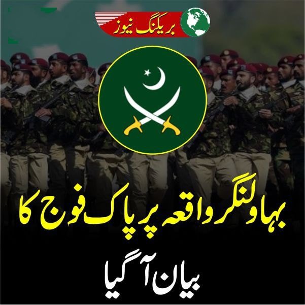پاک فوج کے شعبہ تعلقات عامہ (آئی ایس پی آر) کا کہناہے کہ بہاولنگر میں ایک افسوسناک واقعہ پیش آیا  جس کو فوج اور پولیس حکام کی مشترکہ کوششوں سے فوری حل کرلیا گیا ،باوجود اس کے مخصوص عناصر نے  سوشل میڈیا پر پروپیگنڈا شروع کردیا،مٰخصوص مقاصد کیلئے ریاستی اداروں اور سرکاری محکموں کے درمیان تقسیم پیدا کرنے کی کوشش کی گئی۔