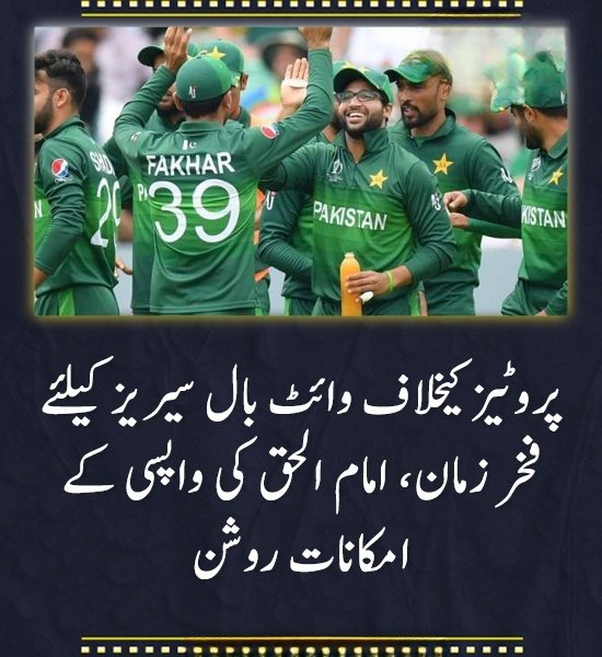 میڈیا رپورٹس کے مطابق پاکستان کو آئندہ سیریز کے لیے اپنی وائٹ بال سکواڈ میں دو نمایاں شمولیتوں کی توقع ہے، امام الحق اور فخر زمان کی لیفٹ آرم بیٹنگ جوڑی دونوں کھلاڑی حال ہی میں قومی ٹیم سے غیر حاضر رہنے کے بعد واپسی کے لیے تیار ہیں۔