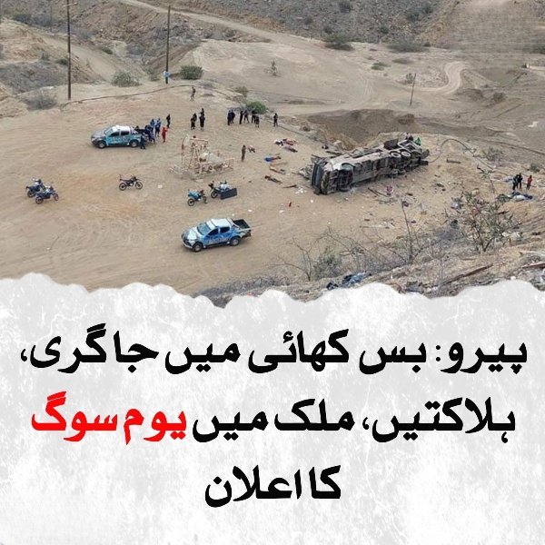 غیر ملکی خبر رساں ایجنسی کے مطابق بس حادثہ جنوبی امریکہ کے ملک پیرو کے شمالی علاقے کلیندین میں پیش آیا۔ حادثے کی وجہ کچہ اور پتھریلا راستہ بتایا جا رہا ہے۔
