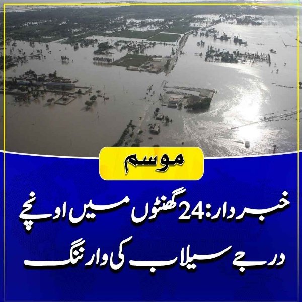 24 گھنٹوں میں اونچے درجے سیلاب کی وارننگ