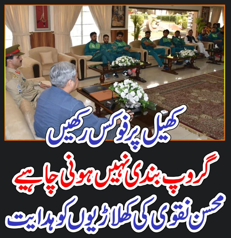محسن نقوی نے کھلاڑیوں کو کھیل پر فوکس رکھنے کی ہدایت کرتے ہوئے کہا ہے …