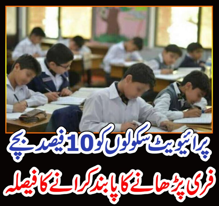 حکومت نے پرائیویٹ سکول آرڈننس 2014ء دوبارہ فعال کرکے پرائیویٹ سکولوں کو دس فیصد بچے …