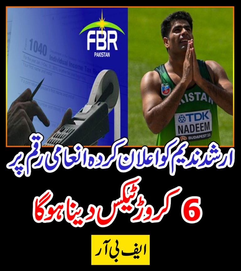 ارشد ندیم کو اعلان کردہ انعامی رقم پر 6 کروڑ ٹیکس دینا ہوگا،ایف بی آر